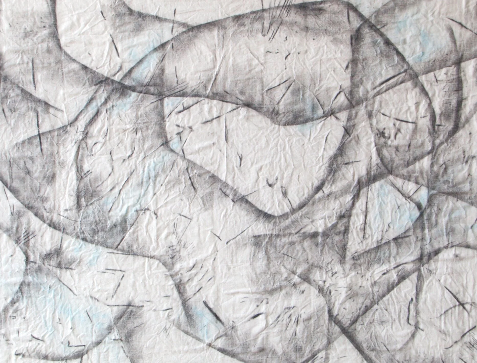 pastel, pen, paper on linen